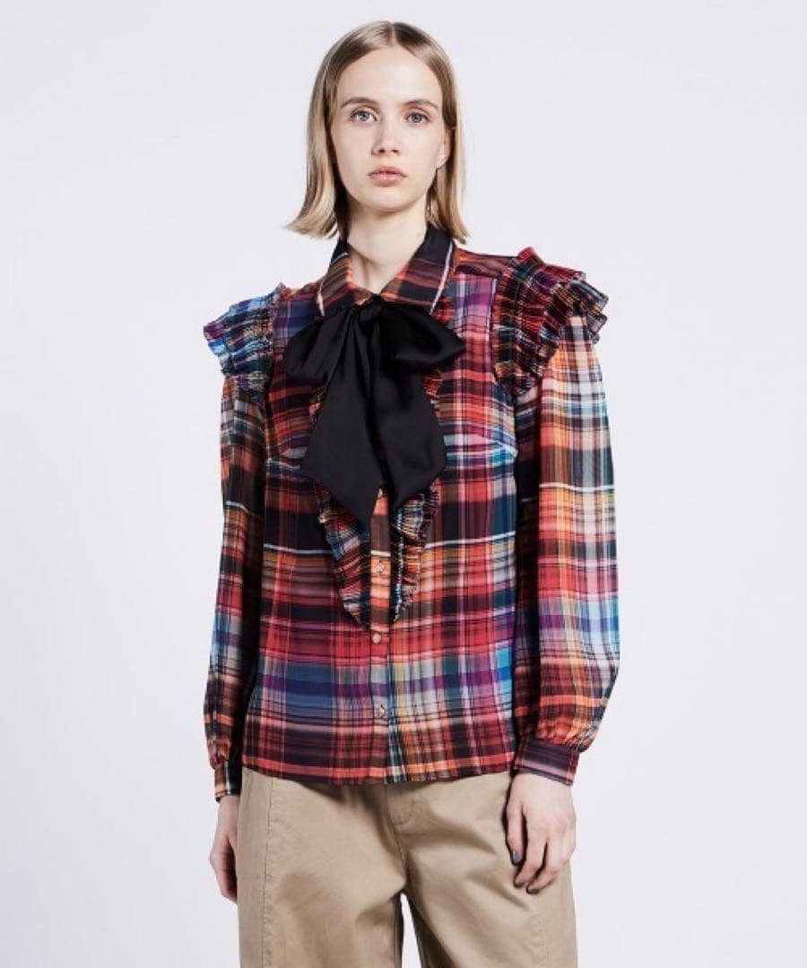 ピンクハウス × aoki misako コラボ チェックフードブラウス